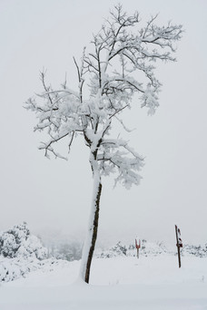 That was by far the biggest amount of snow we received overnight throughout the whole winter. When I opened the door to take a walk out with our dog, there was about 20+ cm of snow at the threshold. Luna was baffled at first and shortly after she was jumping in excitement and throwing herself into the snowdrifts. The street was all covered with snow. We met this view on our way to the Carrascal nature park.
